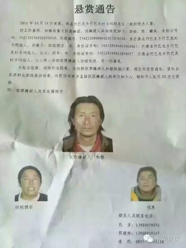 警方发布的嫌犯加措照片。 平安甘孜 图