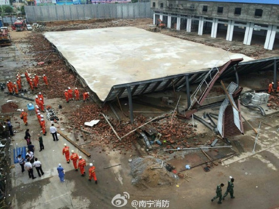 中新网10月21日电 据南宁市公安消防支队官方微博消息,今天上午8点左右,南宁银海大道良庆检察院附近一房子坍塌。据报警人称,现场有人员被困。