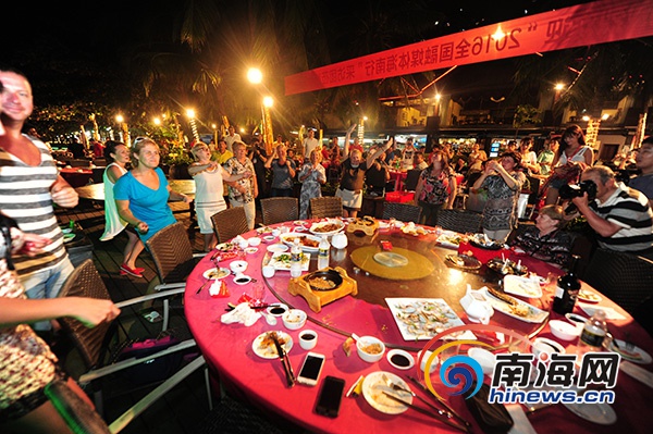 南海网、南海网客户端三亚10月21日消息(南海网记者邓松实习生孙梦聪)坐在海边感受美景的同时享受美味的海鲜不失为人生一大乐趣。10月21日晚,参加南海网主办的“全域旅游海南范例——2016全国融媒体海南行”大型采访活动的52家全国融媒体记者在三亚东海龙宫餐厅欣赏椰风海韵,品尝地道海南美食。
