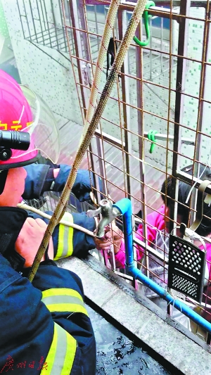 消防员剪锁父女俩顺利获救
