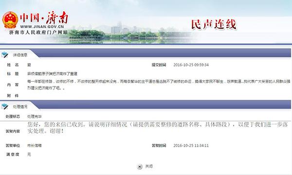 这本是市民抱怨之辞,没想到济南市政府网站竟然回复了。内容如下: