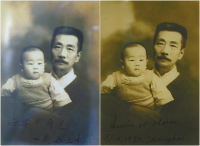 1930年9月25日,“海婴与鲁迅,一岁与五十”,摄于上海春阳照相馆。