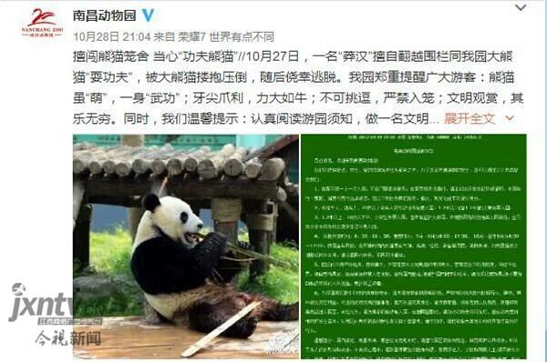 江西网络广播电视台讯(记者 胡康林)近日,有网友爆料,27日下午在南昌动物园熊猫馆内 ,一名男子突然翻越围栏跳入馆中,与大熊猫扭打在了一起,并被大熊猫搂抱压倒,随后侥幸逃脱。目前,大熊猫身体无恙,涉事男子事后不知所踪。
