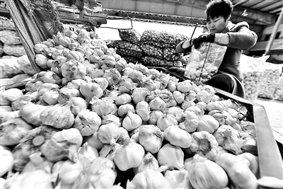 按照国家发改委的调查数据显示,10月份大蒜零售价格为每斤7.89元,同比上涨67.9%。但是进入11月份,大蒜零售价格肯定又往上蹿了一蹿,当梁大妈去市场买蒜的时候,蒜价已经涨到每斤10元了。而在京东商城,大蒜之乡山东金乡的新鲜蒜头,零售价格为每斤13.8元。昨天,北京新发地批发市场的最新价格信息显示,大蒜批发价格与10月份相比又有上涨,为每斤7.5元。
