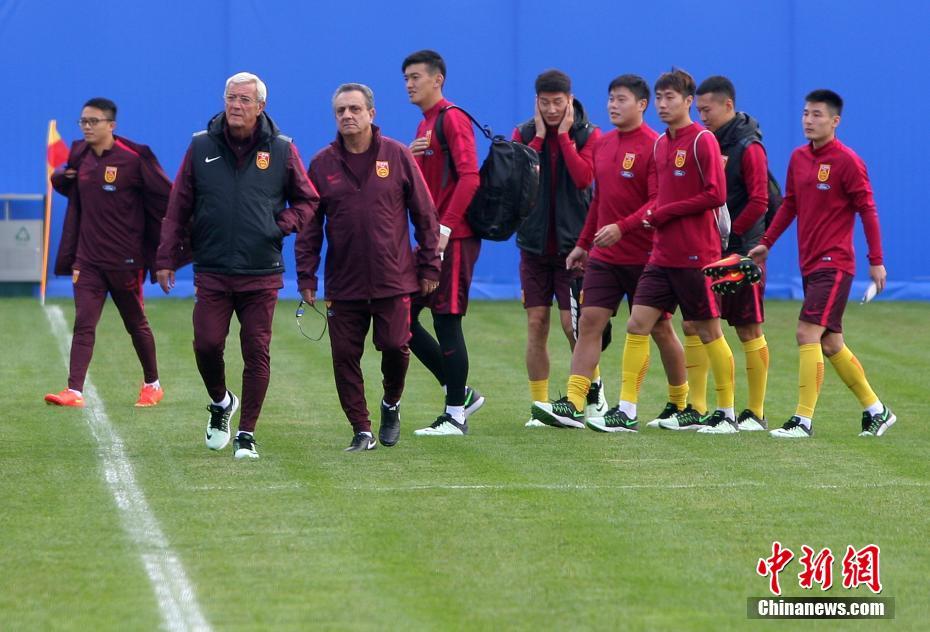 11月3日下午,里皮和他的团队走进集训现场。当日,中国国家男子足球队在新任主帅里皮的带领下,在昆明海埂训练基地进行首训。 中新社记者 李进红 摄