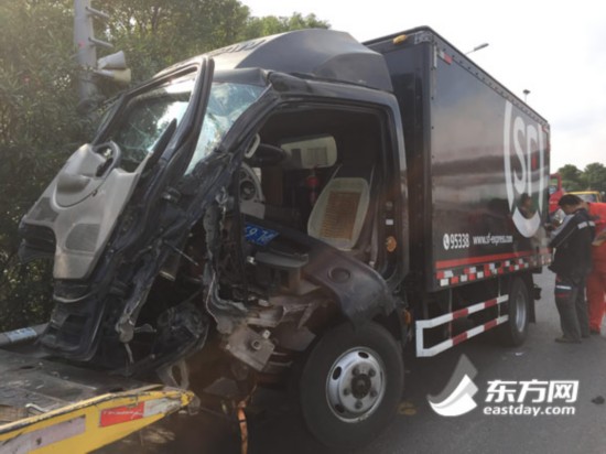 S32申嘉湖高速追尾事故现场。