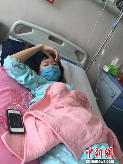 确诊患有乳腺恶性肿瘤,雯静在当地医院接受第一周期化疗。 沈国蓉供图 摄
