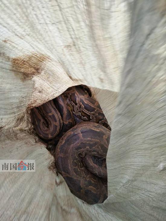 “看到这场景,虽然也感到害怕,但更多的是气愤。”黄说,他立即跳下大腿深的洞里,紧紧抓住蟒蛇的尾巴,让其无法往洞里钻。接着,他腾出一只手打电话,叫在附近山头养羊的一个村民赶来支援。