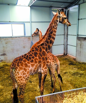 这次来到顺德的长颈鹿高就有3米。早在很多天前,动物专家就来到了长颈鹿的家,了解2只鹿宝宝的情况,测定它们的长、宽、高,称好它们的体重,还特意为它们定制箱子,一个一房一厅的居室。考虑到沿途弯多,路况有时不好,怕长颈鹿碰伤,还在箱内贴上了10cm的海绵。