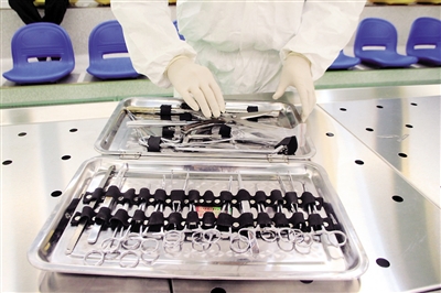 心脏小块被切割成4微米厚的薄片装片。 本报记者 平索茜 摄