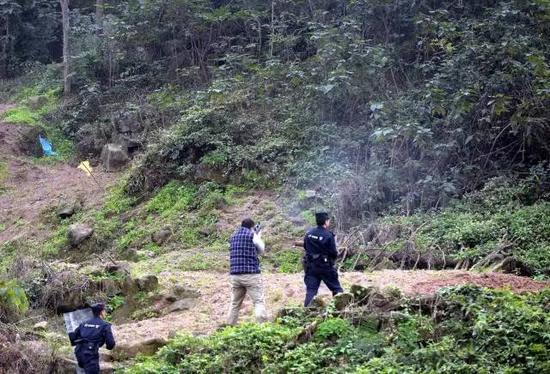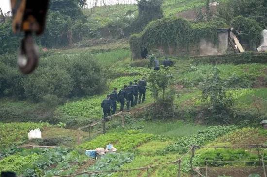 由于野猪当时所处位置在居民小区,无开枪击毙条件,江北警方便将野猪围堵至小区周边小山坡。江北公安、重庆市森林公安、鱼嘴镇政府等相关部门立即展开全力围捕工作,成功将野猪击毙,围捕过程中无人员受伤。(重庆晚报记者 杨帆 柳青 摄影报道)