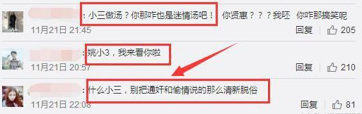 许久没有更新微博的姚笛,好不容易发一条做汤的微博,只因为用了两个字“贤惠”,微博下被骂惨了,有网友评论姚笛称,抱着别人的老公,也是很贤惠呀。也有网友留言称做的汤有毒,喝了会出轨出到停不下来,姚笛做的汤是迷情汤。更是有网友称不要叫姚笛小三,别把偷情说的那么清新脱俗。