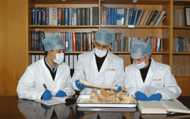 贾东涛与同事一起学习交流骨语鉴定