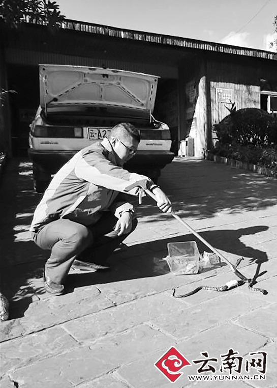 “蛇,有毒蛇,麻烦你们森林公安前来处理。”24日中午12时,位于昆明市嵩明县军马场职教基地的一学院保卫处干部打来电话求助。