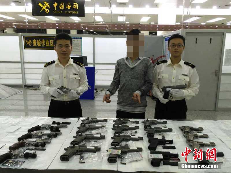 11月28日,深圳皇岗海关发布消息称,该关在福田口岸查获一名香港旅客利用背包藏匿枪支弹药入境案件,共查获气动力枪22支、铅制子弹6347发,其他配件若干。 郑小红 蒋昕 摄