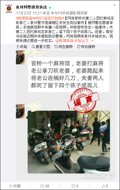 1、福建南安夫妻因打麻将互砍身亡?警方辟谣