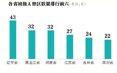 其中,东北地区治理整顿力度最大。继10月份吉林省取消了4家4A级景区资质后,黑龙江和辽宁又有8家4A级景区被摘牌。其中,黑龙江取消了5家4A级景区资质,另有5家4A级景区被降级、22家4A级景区被警告;辽宁取消了3家4A级景区资质。另外,辽宁、黑龙江、河南、江苏、吉林和四川等6省本次处理A级景区超过20家。