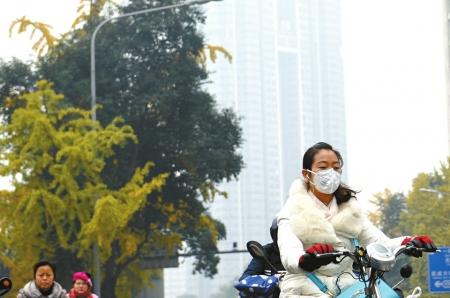 成都持续雾霾天气,市民戴着口罩出行。 刘陈平 摄