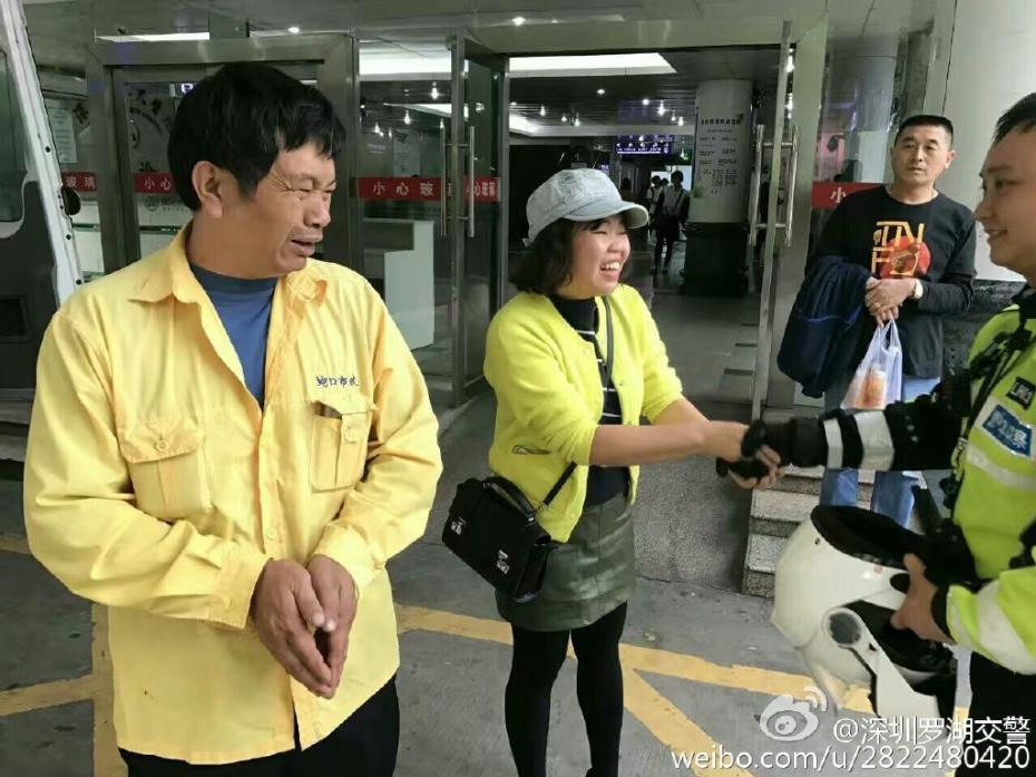 民警艾力军迅速带领队员赶往沙湾路进关的大望桥头等候,于16点25分对接到送危急病人的救护车,然后密集的车流中开辟了一条生命通道,极速护送救护车前行。图片来源:深圳罗湖交警官微