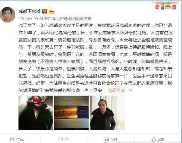 不过让人大跌眼镜的是,次日,该医生毫不畏争议,又晒出了自己的收入身家。今(6)日,该微博博主、成都某三甲医院泌尿外科副主任医师任黎明接受了成都商报专访,回应质疑。