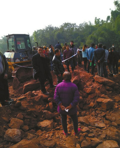 “7日早上8点过,正好在家对面的施工点开始施工,听得到推土机的作业声音。村主任罗松找到我,说施工人员还要施工一天半,今天要把已经推出来的地方,降低坡度,且推出来的土石不会推落在我的田地里,让我劝劝母亲不要去阻工。村主任这样说,我就答应了,随后我就到下长镇赶集去了。”罗忠成说,等我接到亲戚电话后,慌忙赶回家时,惨剧已经发生了。
