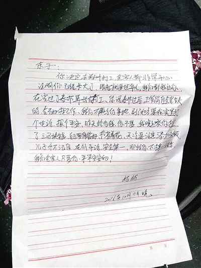 “……给你钱你不要,晚上放你衣服包里了……妈妈不希望你挣多少钱,只希望你平平安安。”12月12日,在一个稍旧的包袱里,一张薄薄的信,温暖了一群在外工作的人,虽然他们不是信的主人,但一位母亲的爱让他们热泪盈眶,更想念老家的亲人。郑报融媒记者 张华 通讯员 云溪 文/图