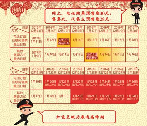 中国铁路总公司在上述《方案》中也明确,春运图定旅客列车和增开旅客列车的车票均于2016年12月15日开始发售。