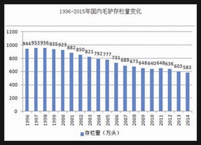 原料驴皮的短缺,是促使阿胶涨价的根本原因。根据国家畜牧统计年鉴显示,毛驴存栏量已由上世纪90年代的1100万头下滑到500多万头,并且还在以每年超过3%的速度下降。