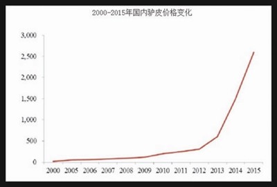 2000-2015年国内驴皮价格变化