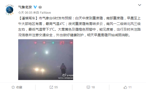 北京市气象局官方微博06时发布消息称,21日早晨雾霾开始减弱消散。