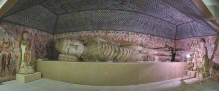 之后,笃信佛教的东阳王元荣与建平公于义先后出任瓜州(敦煌古称之一)刺史,又各修一大窟。此后,莫高窟的开窟造像兴盛起来,北凉、北魏、西魏、北周、隋、唐、五代、宋、西夏、元等10个朝代、长达1000年时间内,人们在前临宕泉河、东向三危山的鸣沙山东麓,密密麻麻地开凿了各种洞窟。据统计,古代僧侣信众礼佛的场所集中在南区,现存洞窟492个,塑像2000余尊,壁画4.5万平方米以及木构建筑5座;北区则是僧侣修行、居住、圆寂的场所,有洞窟遗址243个。