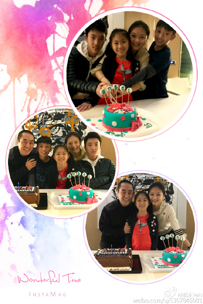 组图:一家五口排排坐!张艺谋全家为小女儿庆生