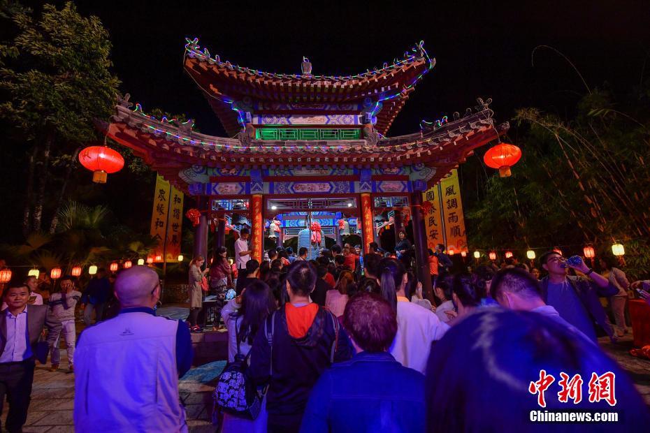 12月31日晚,海南三亚南山举行撞钟祈福迎新系列民俗文化活动,南山寺全体僧众和来自各地的游客敲响108响吉祥钟声,祈福国泰民安,迎接2017年的到来。 中新社记者 骆云飞 摄