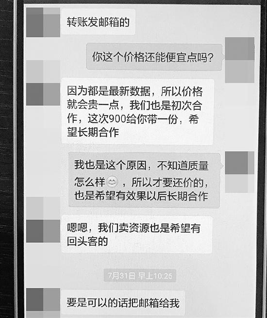 倒卖信息的聊天记录曝光。截图由警方提供