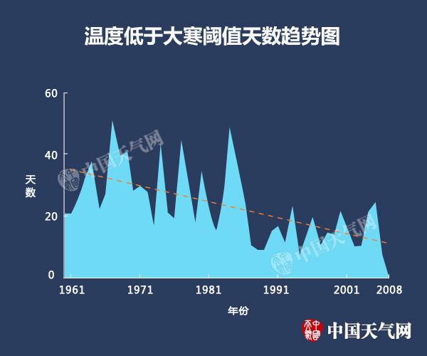 近几十年来,满足大寒阈值气温的天数呈减少趋势。(制图:任成英)