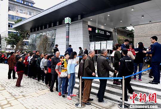资料图 民众排长队领取乘车体验券。 中新社记者 刘可耕 摄