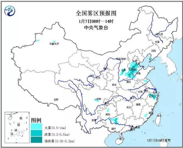 另外,今天河北、河南等地将有强浓雾,能见度将不足200米。7日早晨至上午,河北中南部、天津南部、河南北部、山西中部、山东西北部、浙江北部、广西中部等地有大雾天气,其中,河北南部、河南北部、浙江北部等地的部分地区有能见度低于500米的浓雾,局地有能见度低于200米的强浓雾。