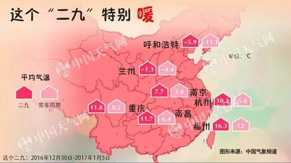 “二九”以来,气温却没有寒天的意思,特别是内蒙古中部、东北中南部以及浙江南部、江西北部、湖南东部等地区,“二九”以来偏暖了5-7℃,不少省会级大城市打破了常年“二九”平均气温纪录。