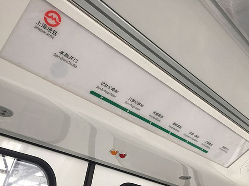 列车的设计也体现了人性化的一面。车门宽度达1980mm(目前的A型地铁车门宽度为1400mm),更有利于乘客加快上下车速度,减少停站时间,缩短发车间隔。此外,不同于常规APM列车,8号线三期车厢之间互相贯通,增加了载客量,乘客分布更加均匀。