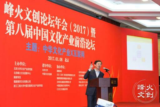 峰火文创论坛年会(2017)暨第八届中国文化产业前沿论坛,本届峰会为期1天,设立了4场分论坛,1场主论坛及高端交流晚宴。主论坛以“中国文化产业×互联网”为主题,北京大学文化产业研究院研究员、北大文化集团总裁许晓峰担任学术主持,特邀民建中央副主席周汉民,国家行政学院原副院长、博士生导师周文彰,光线传媒股份有限公司总裁王长田,中国文化管理协会执行副主席、文化立法专家徐国宝,企鹅影视电影投资业务部总经理常斌,北京大学文化产业研究院副院长陈少峰莅临现场与在座文创人分享政策、文化、互联网、金融多领域资源,探讨在互联网+的大形势下,如何打造可持续发展的运作新模式等话题展开思想博弈,给文创从业者指明方向,实现科学转型与布局,共促文化领域的良性发展。