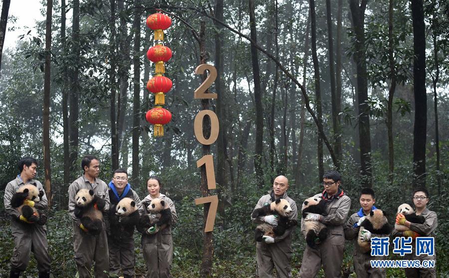 1月11日,中国大熊猫保护研究中心2016年出生的8只大熊猫宝宝集体亮相,为即将到来的新春佳节增添喜庆。