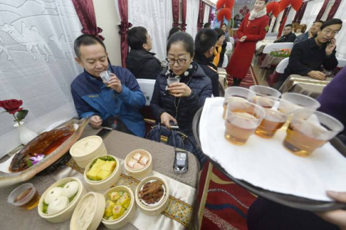 1月13日,旅客在银川发往杭州的列车上用餐。新华社记者 彭昭之 摄