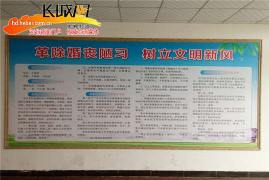 以前,在村民家的红事上,唢呐、酒席是必备项目。现在不用唢呐改用大喇叭,不设彩虹门,不请婚庆公司,酒席采用一顿饭、一碗菜的方式,控制鞭炮燃放,控制迎亲车辆,一场红事能给主家节省近三万元。