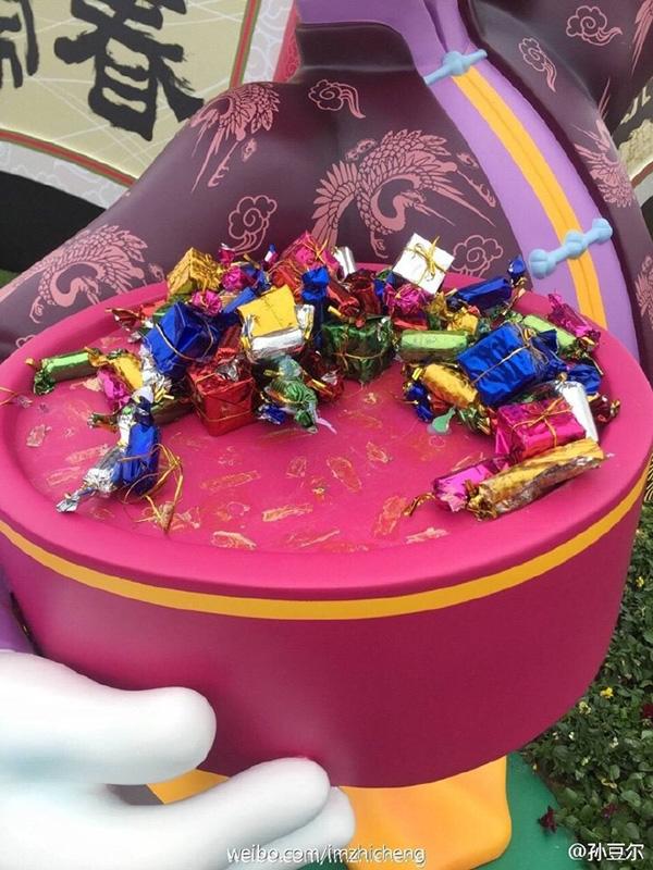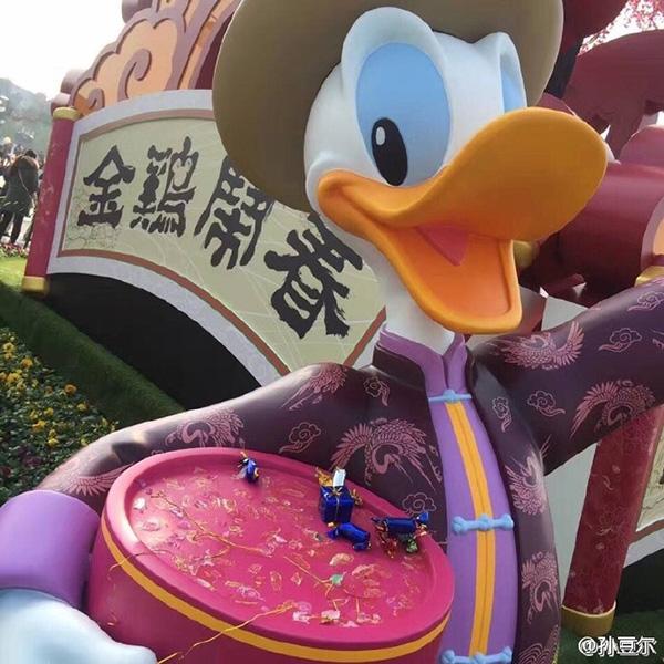 近日,微博网友 @孙豆尔爆料,由于春节将至,上海迪士尼在城堡前弄了一个“金鸡闹春”的景观供游人互动拍照。本来是挺好的一件事,偏偏有人把唐老鸭手上的糖果弄下来拿走了!