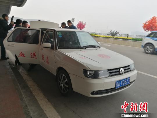 16日上午八时许,太原市红十字血液中心急救送血车载着一袋装有400ml稀有血型的血袋,从太原机场急速驶向医院。 范丽芳 摄