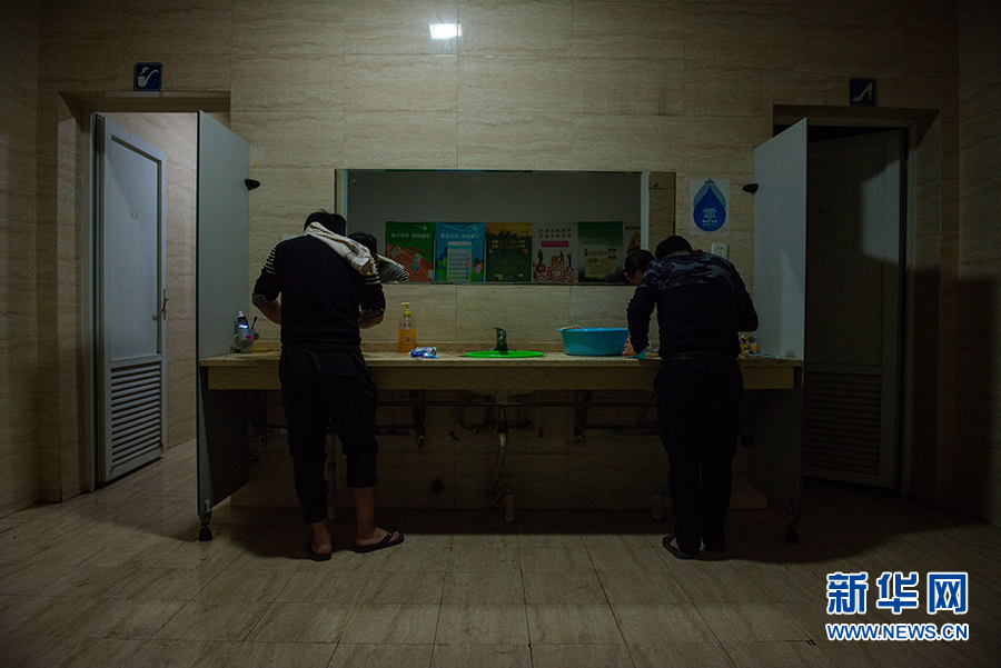凌晨三点,助航灯光巡检工们正在洗漱,准备外出作业。新华网 李相博 摄