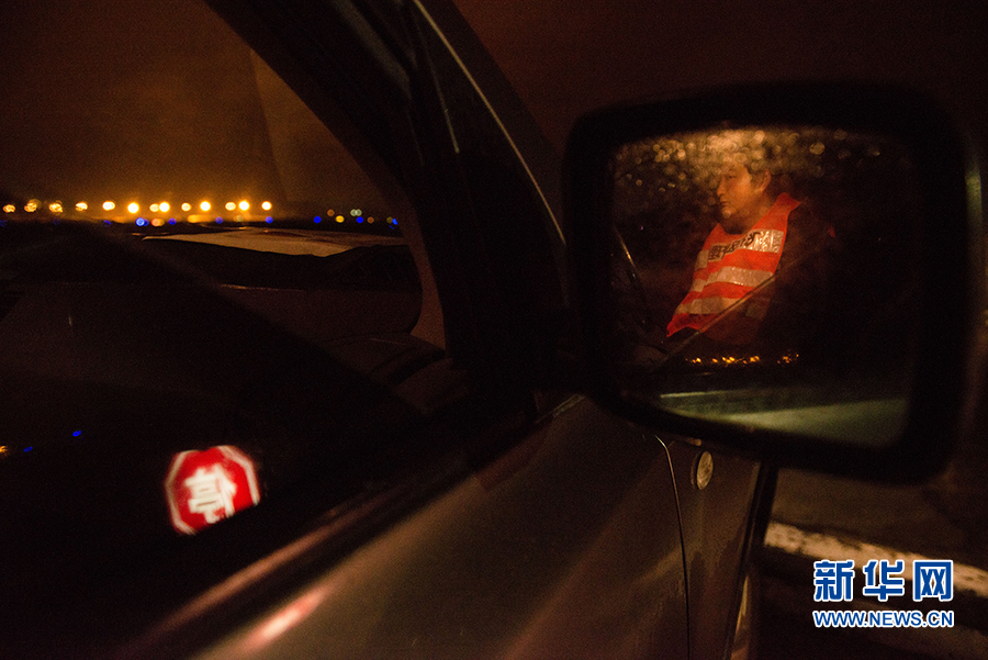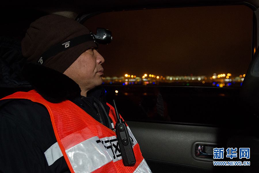 巡检工曾乐康透过车窗巡查助航灯光情况。新华网 李相博 摄