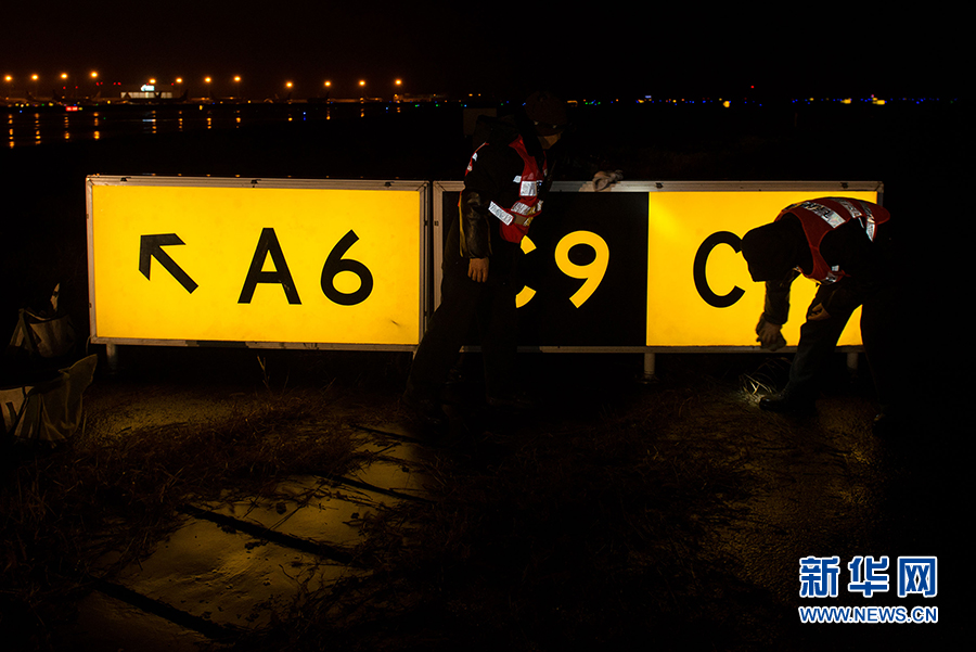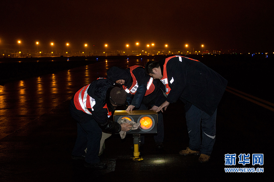 巡检工对助航灯光进行维护。新华网 李相博 摄