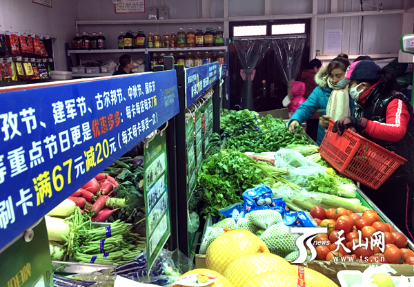 据了解,随着春节的临近,为了方便广大居民购买年货,乌鲁木齐市水磨沟区在辖区79个便民蔬菜直销点同步开展了新年促销活动,活动从1月16日持续到1月27日。活动期间,每个便民蔬菜直销点都设了促销产品专区,销售包括蔬菜水果、米面粮油、海产品、家庭装饮料、礼盒以及新疆特产干果等6大类49种商品。活动所有商品均是水磨沟区配送中心直接联系厂家,部分商品售价甚至低于市场价5折。