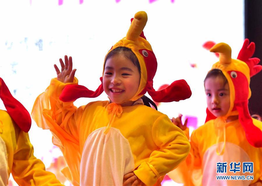1月20日晚,小朋友在舞台上表演舞蹈《小鸡咯咯》。当晚,一场少儿新年音乐会在广西南宁市东葛路举行,小朋友们在歌舞中迎接即将来临的鸡年。 新华社记者 黄孝邦 摄